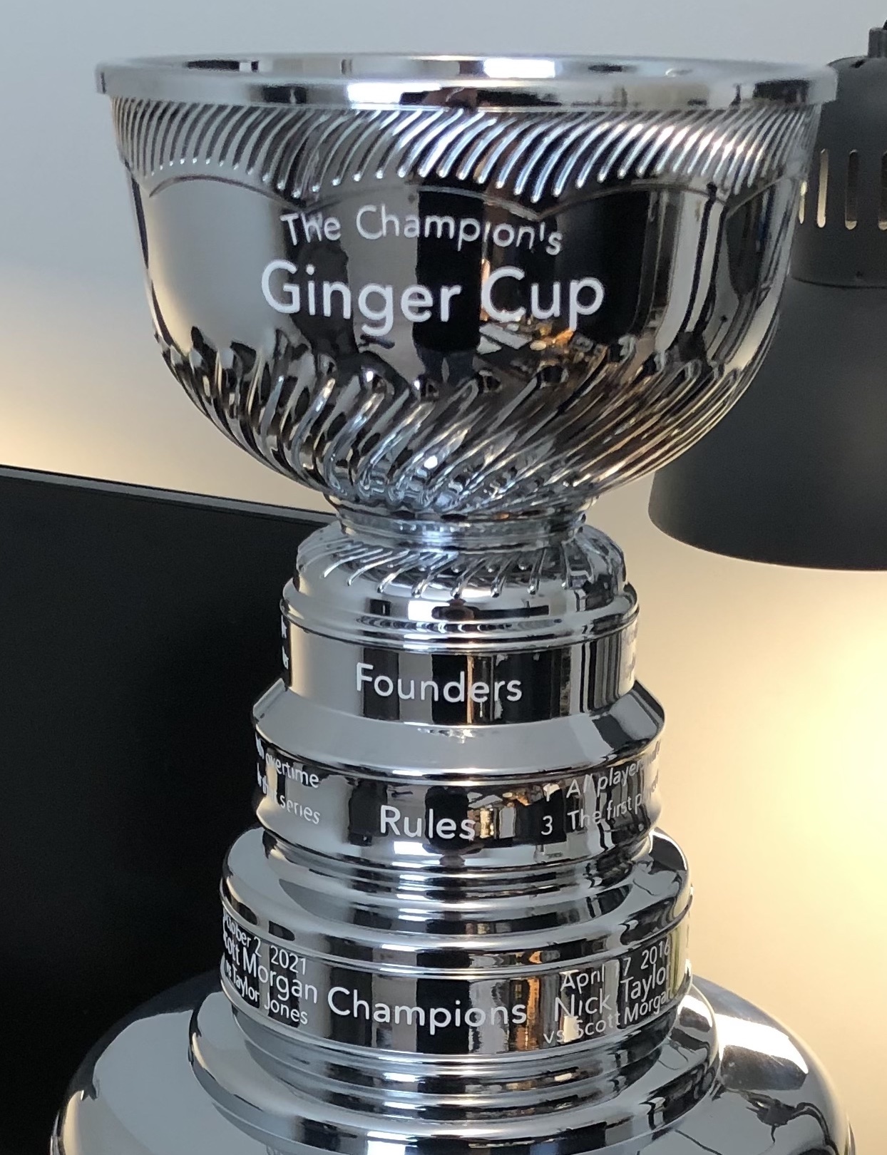 The Ginger Cup has been awarded 5 times during two different eras: the Tournament Era, where rules fluctuated and statistics were never recorded, as well as the Champtionship Era, where rules are defined and results are logged for history.